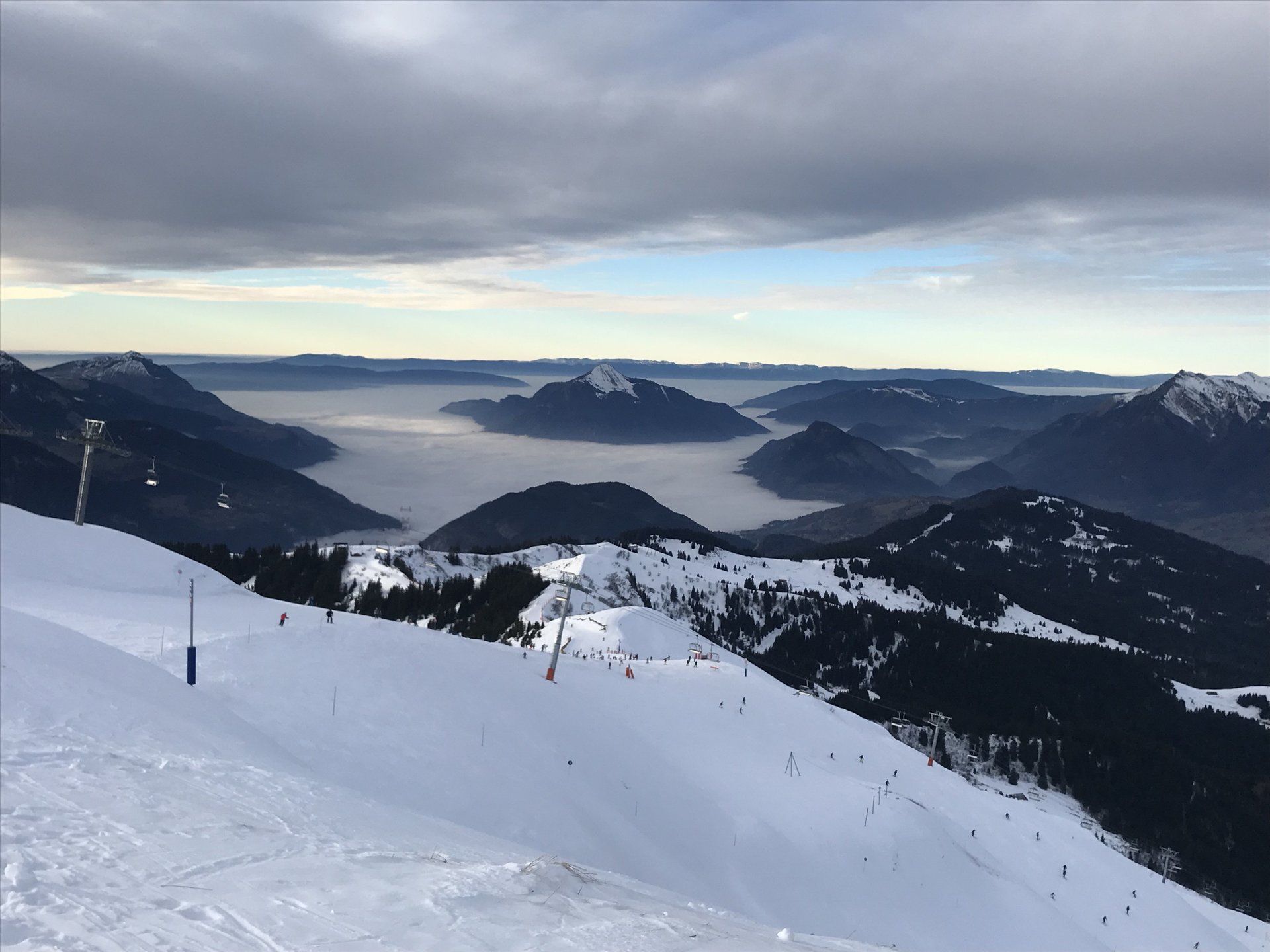 Samoens 1600 is an great place to learn to ski or snow board, with several local ski schools to choose from and plenty of easy green runs. For those who want more challenging skiing, from 1600 there are ski lifts and runs that connect directly to Les Carroz, Morrillon and the large Flaine ski area. The highest point in Flaine is 2,500m so the snow is reliably good there for most of the season. Mt Blanc provides an impressive backstop view to many of the runs in Flaine.